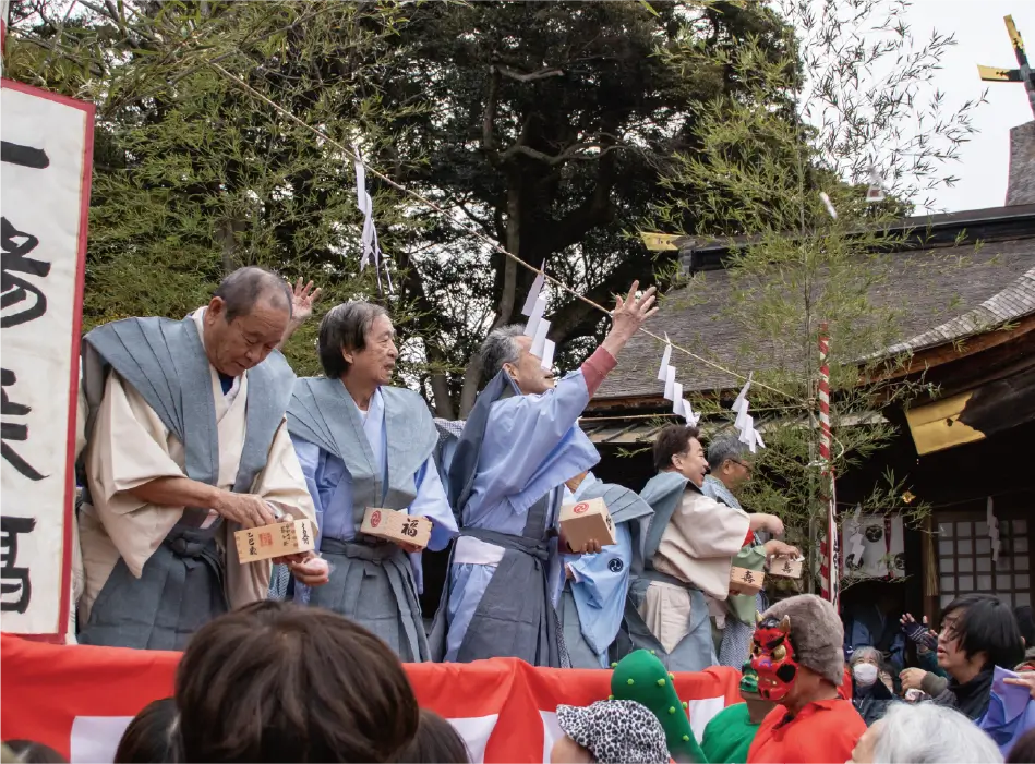 立春前日に行われる、旧年の厄を払い、新しい春を清々しく迎えるための祭典です。全国で鬼を追い払う追儺式や豆まきなどが催されます。追儺式とは、古来宮中において行われ、鬼に象徴されるいろいろな災いや穢れを祓い清々しい気持ちで新春を迎えるための祭典です。当宮では、7か所に矢を放ち邪気を祓う「弓矢の儀」、招福会会長による豆をまく「豆打の儀」が執り行われます。追儺式では、年男・年女・年祝・厄年にあたる方々に参加して貰い、邪気を払うために参列者と共に豆まきが行われます。