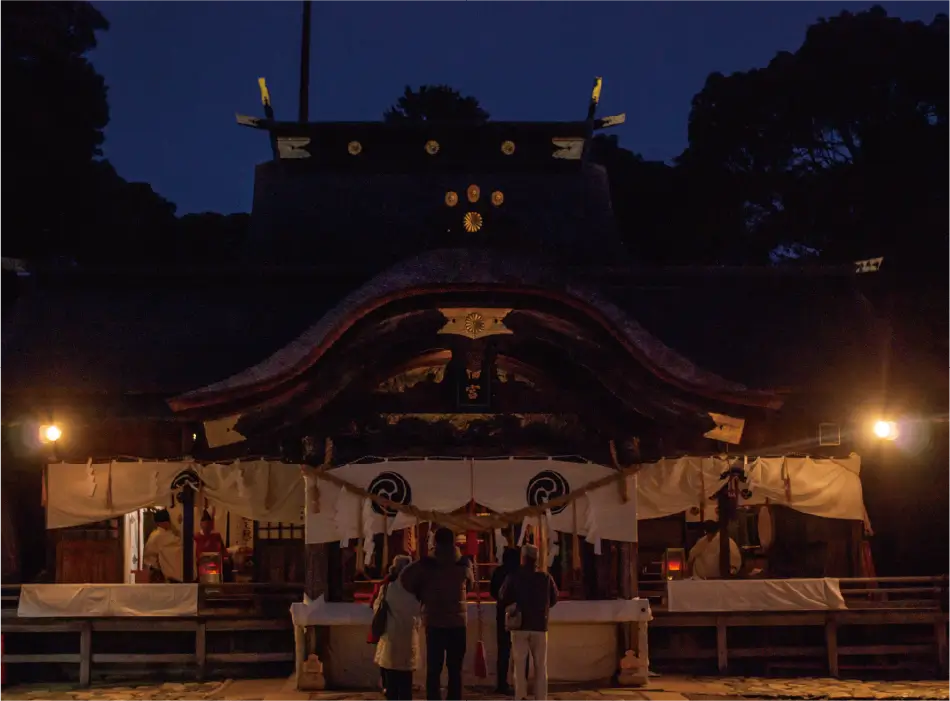 紀元節祭は、日本の初代天皇である神武天皇が橿原の宮にて即位された日で(旧暦1月1日、現在の2月11日)を祝う祭典です。